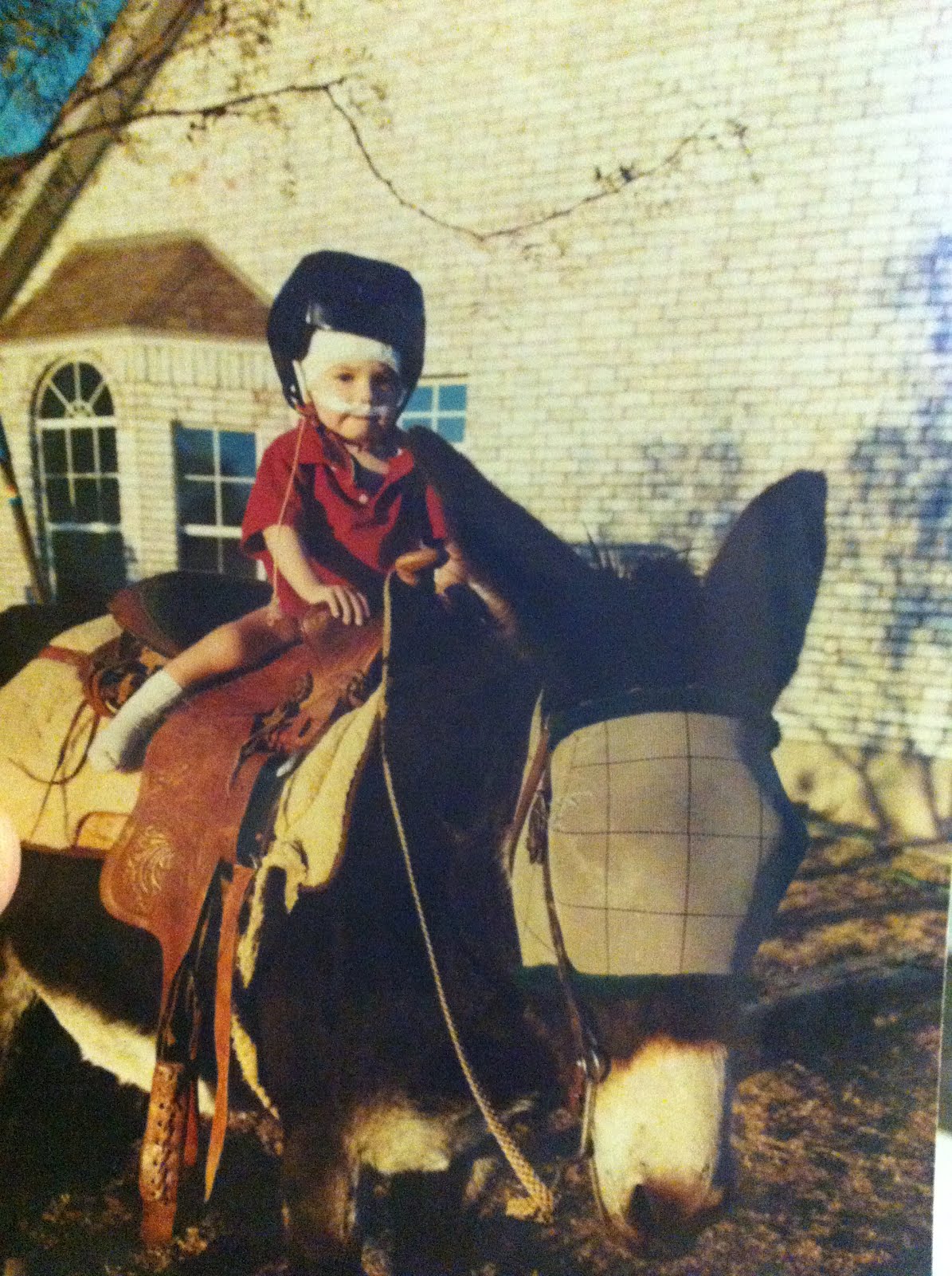 Wearing his little helmet to protect the bleeding head. Still so cute!